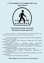 В Беларуси традиционно с 15 октября по 15 ноября проводится месячник «Человек с белой тростью». Международный день белой трости отмечается 15 октября. Но это – не праздник. Это своеобразный «знак беды», напоминающий обществу о существовании рядом людей с ограниченными физическими возможностями, о помощи и о солидарности.