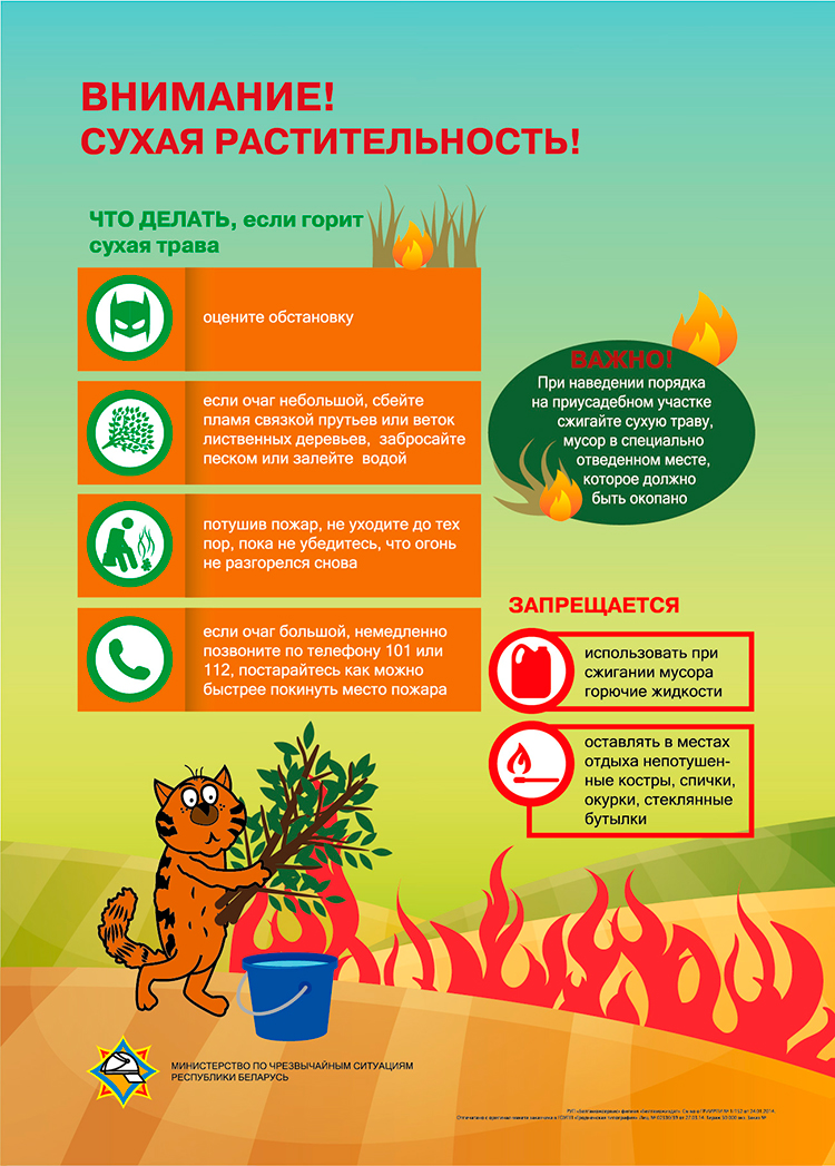 - ни в коем случае не жгите траву, тщательно тушите окурки и спички