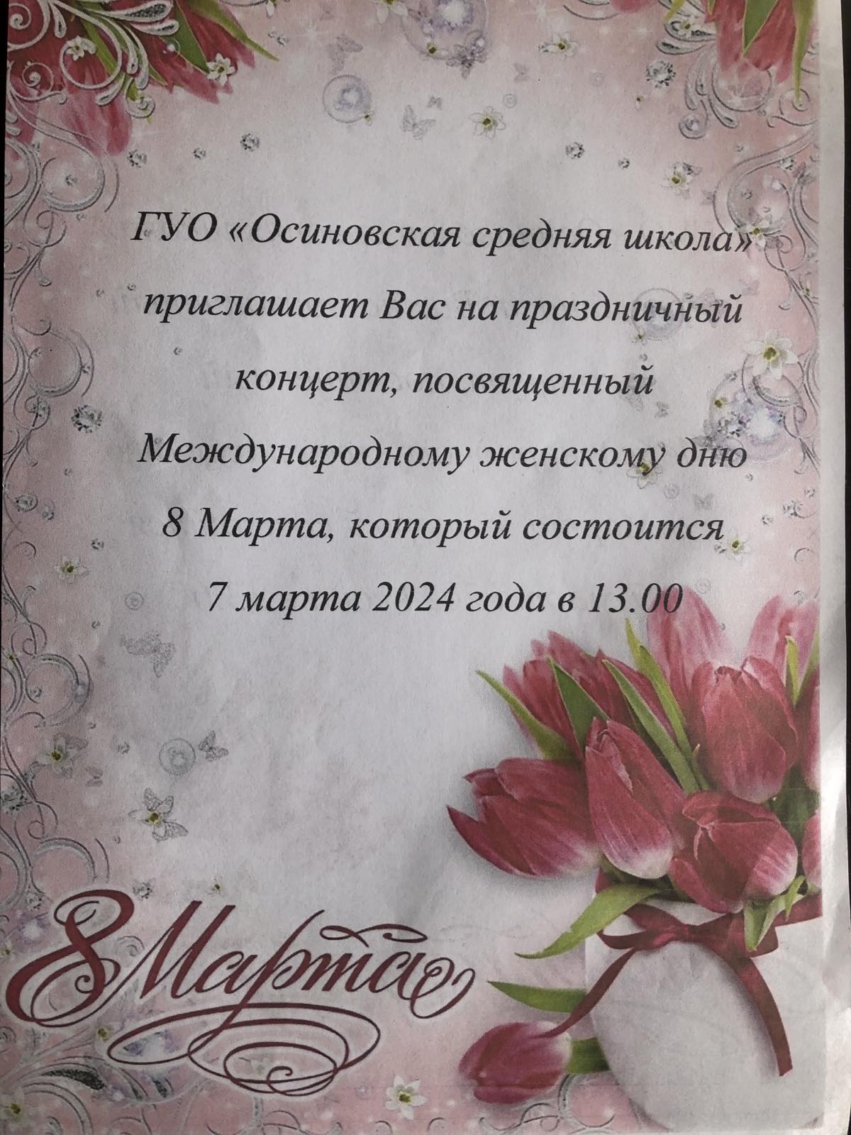 Приглашаем Вас на праздничный концерт, посвященный Международному женскому дню