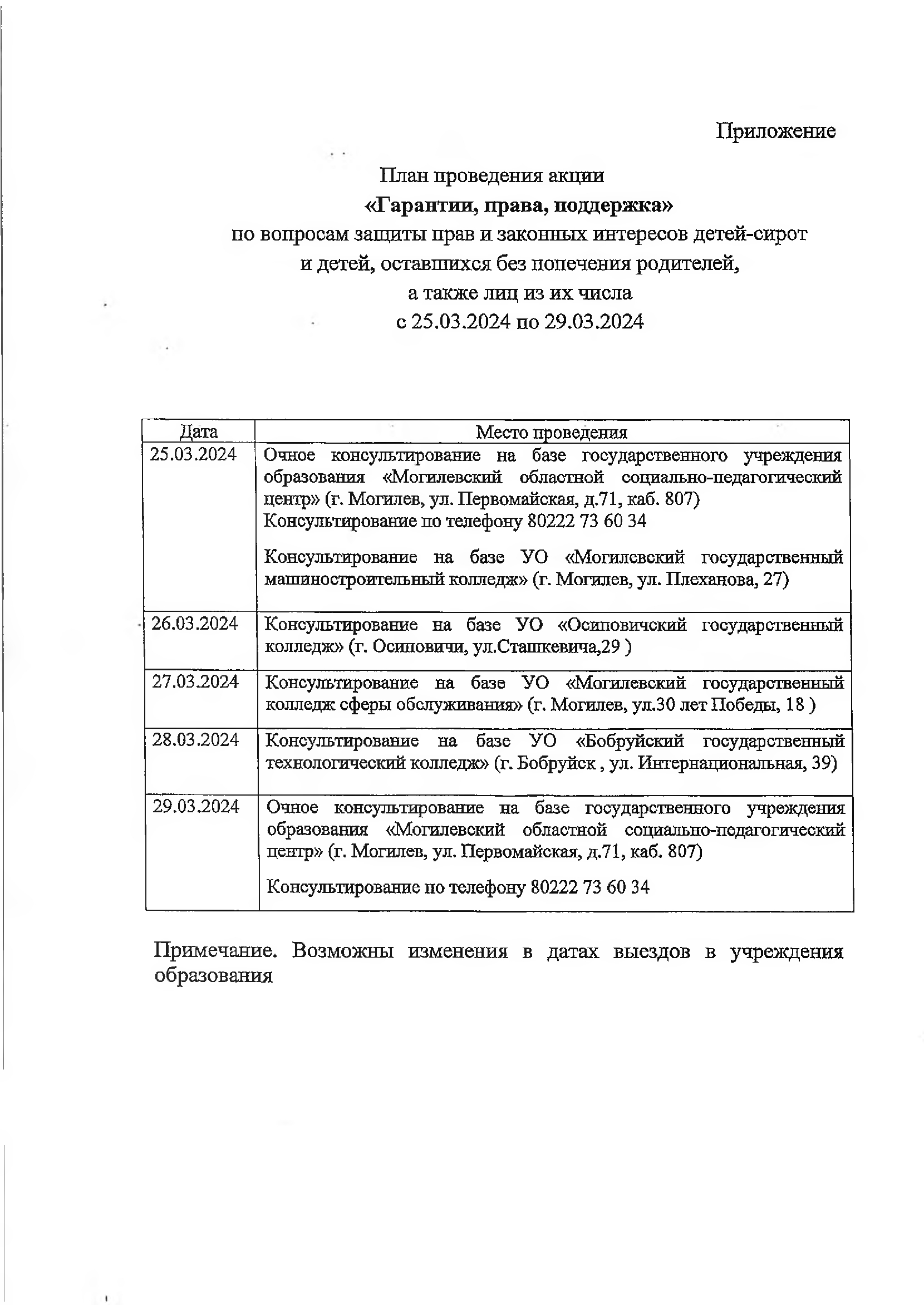 План проведения акции «Гарантии, права, поддержка»